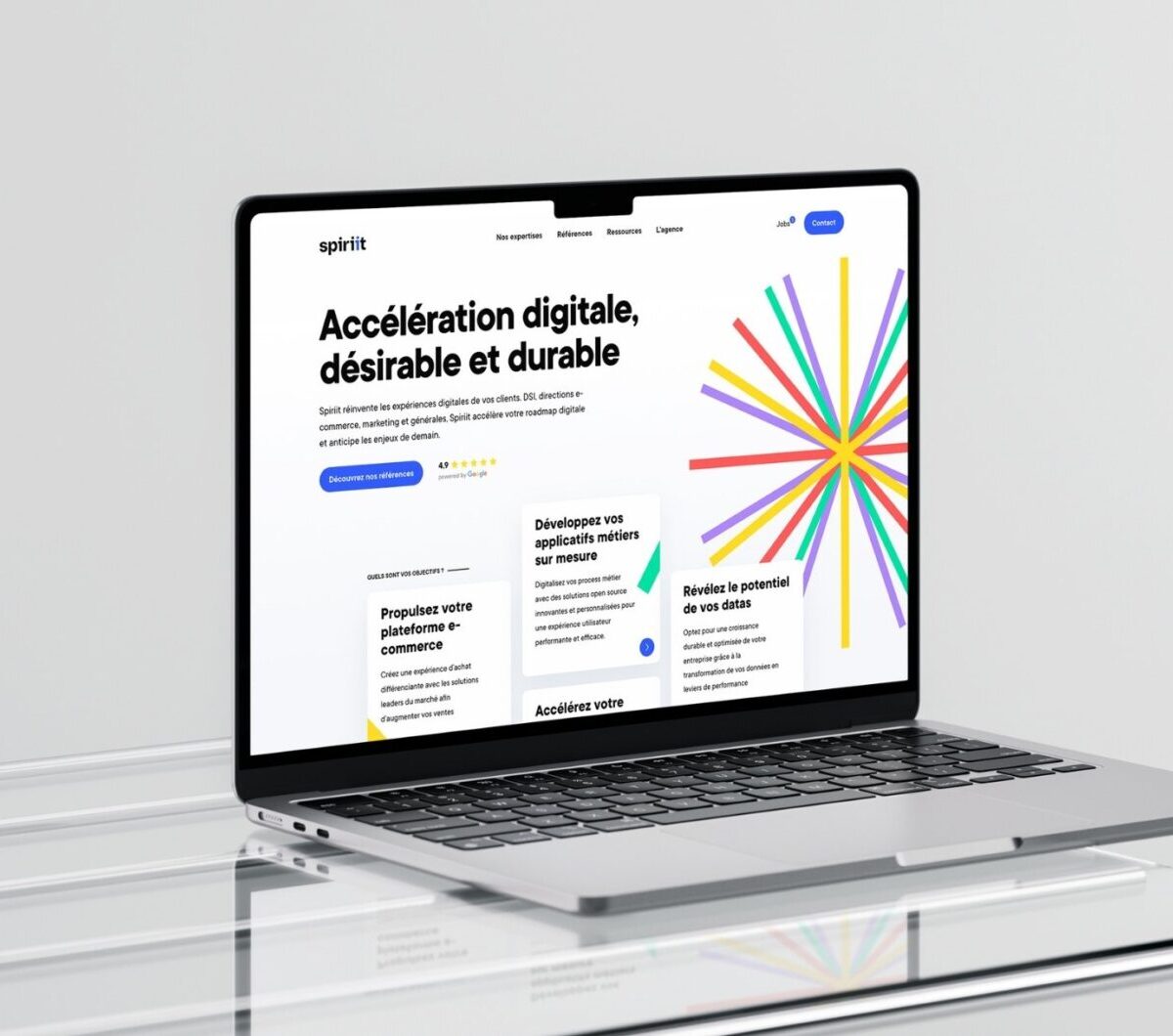 Spiriit est une agence digitale d’environ 50 collaborateurs, organisée autour de plusieurs expertises complémentaires : e-commerce Shopify, applicatifs métiers Symfony, UX/UI, IA, performance et innovation.