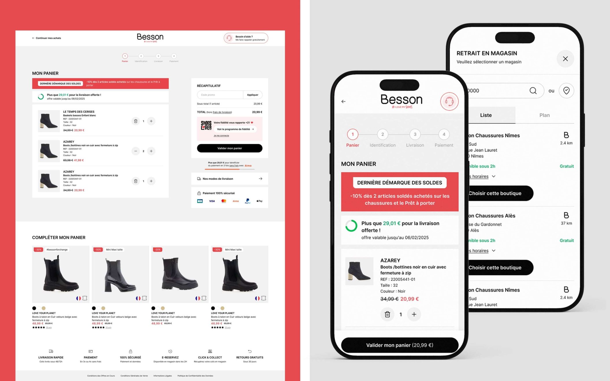Nous structurons vos parcours clés : navigation, recherche, PIM, catalogue, tunnel, espace client.