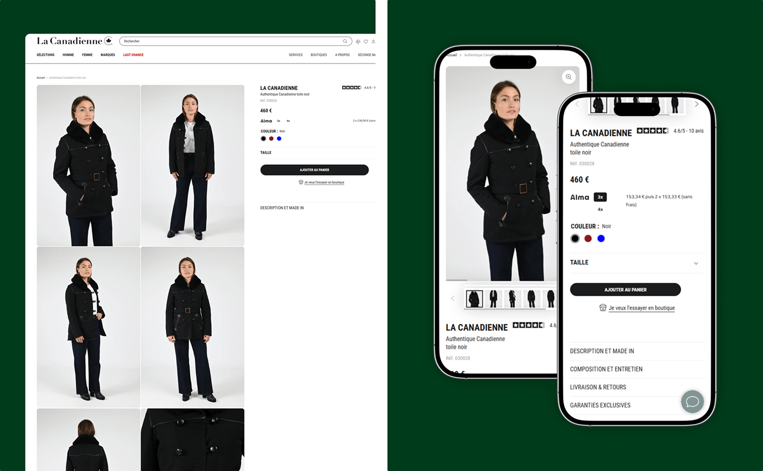 La refonte UX/UI a permis de proposer un nouveau design plus épuré, cohérent avec l’ADN haut de gamme de La Canadienne.