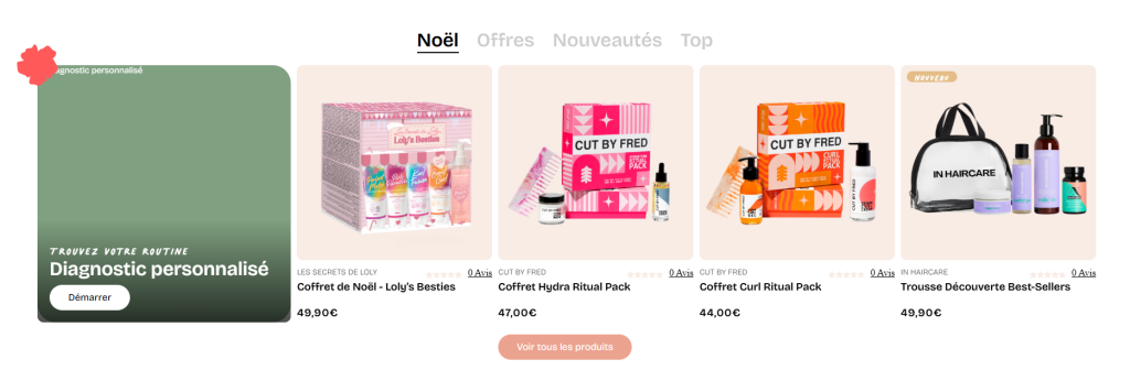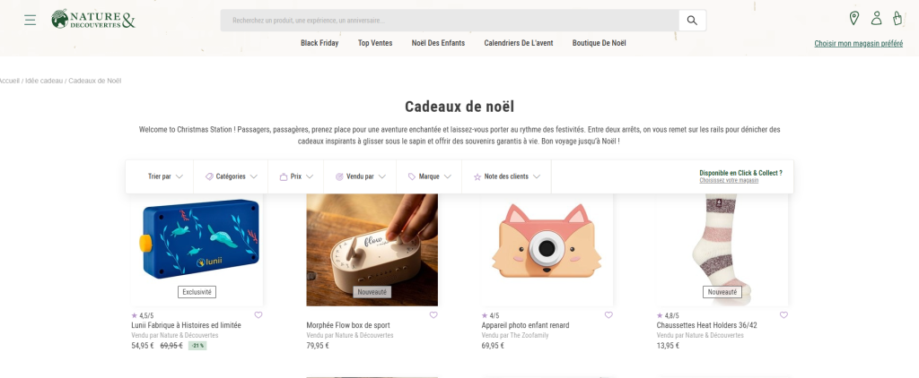 - Par profil : “Pour les enfants”, “Pour elle”, “Pour lui”, “Pour les collègues”.
